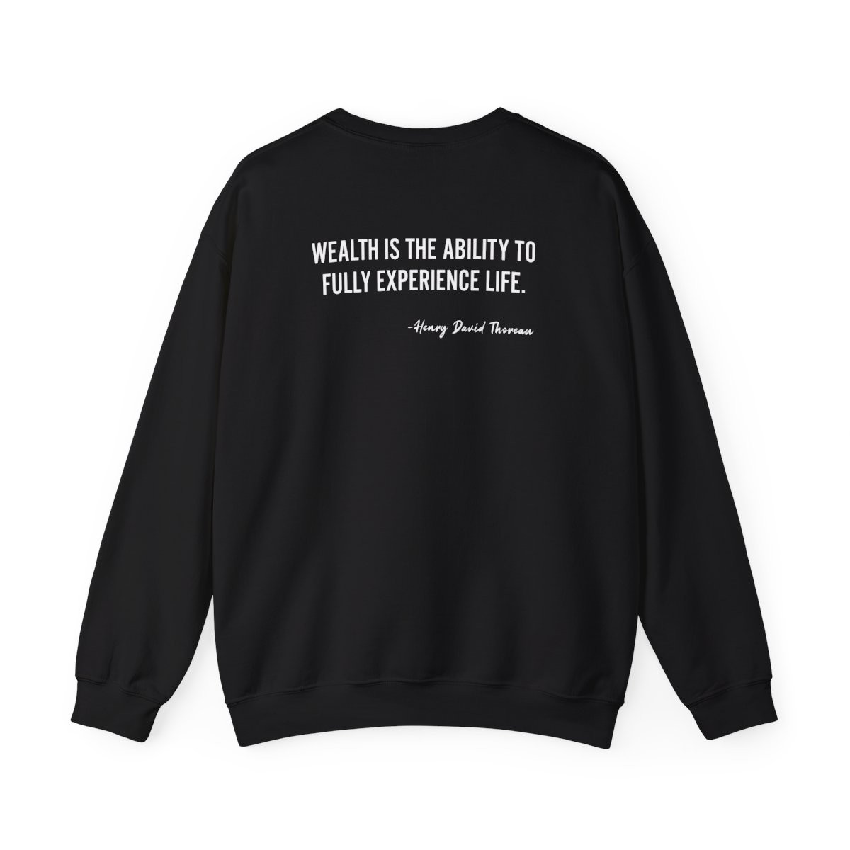 A thoughtful, mid-weight crewneck sweatshirt printed with concise, philosophical quotes that invite calm reflection. The clean white typography sits on a deep black background, front and back, creating a minimalist statement piece that reads like a wearable reminder—quiet, confident, and composed. It settles comfortably into everyday routines: layered over a tee for morning walks, draped on the couch with a book, or worn while sketching plans at a café. The fit is classic and boxy enough to move with you, while the soft 50/50 cotton-poly blend and ribbed details keep the silhouette tidy after many washes. This sweatshirt speaks to people who value meaning over noise—those who appreciate a well-phrased thought to punctuate their day and spark conversation without shouting for attention.