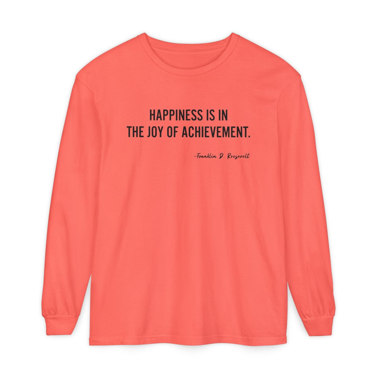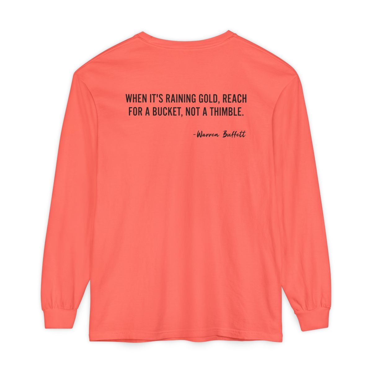 A timeless long-sleeve shirt that speaks quietly to people who chase progress. Soft garment-dyed cotton gives the tee a worn-in hand and muted color while crisp, minimalist text on the front and back offers two short, motivating quotes. It sits comfortably in a classic cut with ribbed cuffs that hold their shape and reinforced neck and shoulder tape for durability. Wear it layered under jackets for cool mornings or on its own during late-night work sessions — a simple, wearable reminder to celebrate small wins and reach confidently when opportunity appears.