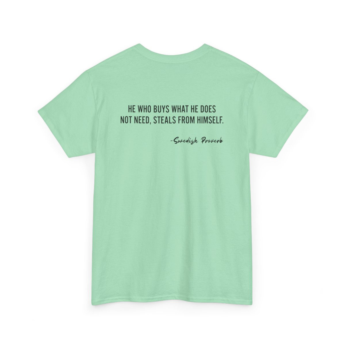 A clean, thoughtful tee that speaks softly but meaningfully. Lightweight and smooth, it carries minimalist text art across the chest and upper back so your message reads like a quiet manifesto. Wear it on morning walks, at bookshop afternoons, or during community gatherings — it settles easily into gentle, values-driven days and pairs well with rolled jeans or a worn-in cardigan. The neutral tone and subtle typography make it an understated companion for people who prefer purpose over noise.