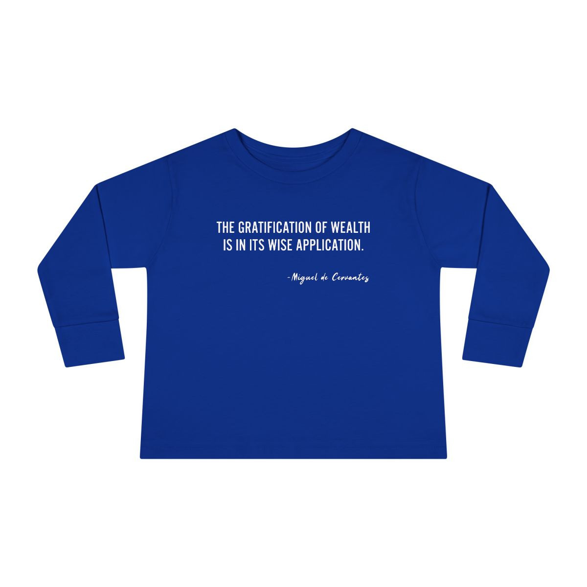 Small but confident—this long sleeve toddler tee carries wise words in a calm, modern voice. Lightweight cotton with clean ribbed cuffs and a neat crew neck lets little ones move freely while the centered text adds quiet character. It layers easily for playground days, family outings, or cozy mornings at home. The message reads like a tiny reminder: growing up with curiosity, comfort, and intention. Soft fabric, slim side seams, and a tear-away label keep it gentle on sensitive skin while staying structured through washes.