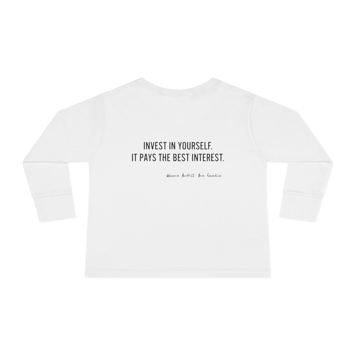 Soft, lightweight long sleeve tee made to move with little explorers. The shirt’s clean lines and ribbed cuffs keep sleeves in place while the tear-away label and gentle fabric care for sensitive skin. Minimal, hand-lettered phrases across the chest and back add a quiet, uplifting note — words meant to encourage curious toddlers as they learn, tumble, and try again. Wear it layered under sweaters or alone on cool mornings; it blends with playful days at the park and slow, cozy moments at home.
