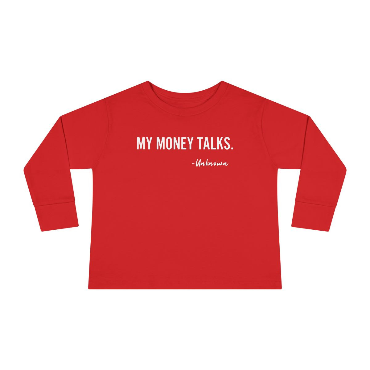 Tiny swagger on a cozy long-sleeve. This toddler tee speaks with quiet humor — short, smart sayings printed on the front and back that make grown-ups smile while little ones stay comfortable. The lightweight cotton blend keeps playtime breezy and the ribbed collar and cuffs hold their shape through wash after wash. It sits casually on a child’s frame, easy to layer under jackets or over a tee. Gentle colors and clean typography make it feel modern and a little cheeky, fitting into everyday routines from park afternoons to family visits.
