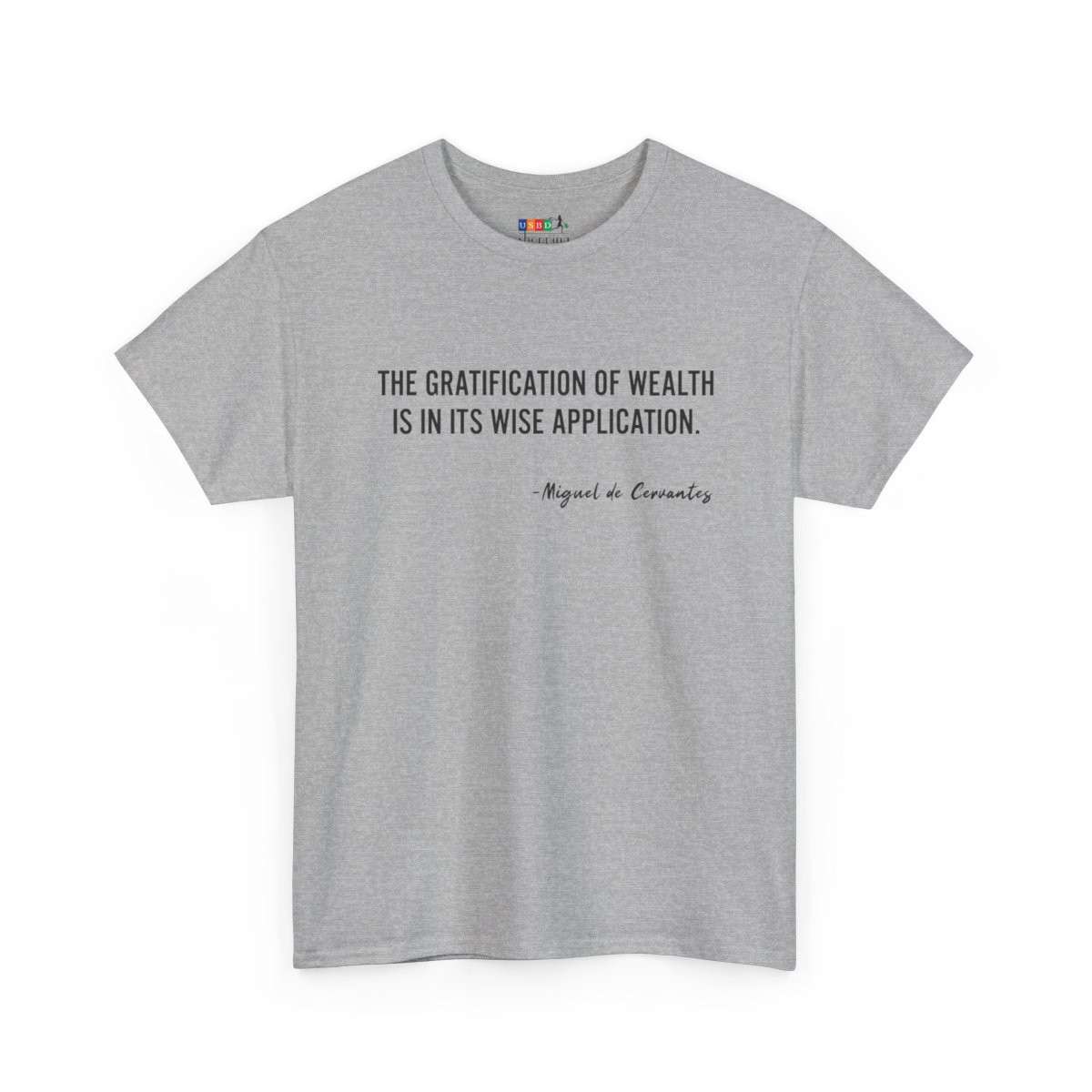 A simple, thoughtful tee that speaks softly but clearly. This classic crew T-shirt carries minimalist, type-driven quotes on both front and back — short statements that shift the focus from accumulation to experience. The smooth, midweight cotton feels steady against the skin, while the relaxed cut and ribbed neckline keep the silhouette familiar and easy to wear. It’s the kind of shirt you reach for when you want clothing that echoes your values without shouting: quiet confidence, measured intention, and room for the day’s small moments.