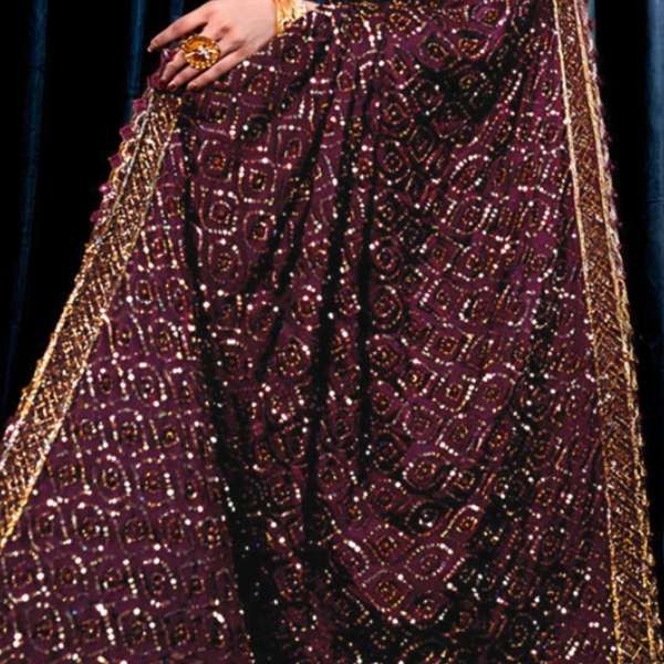Sequins Embroidered Dark Maroon Heavy Organza Saree for Diwali Party