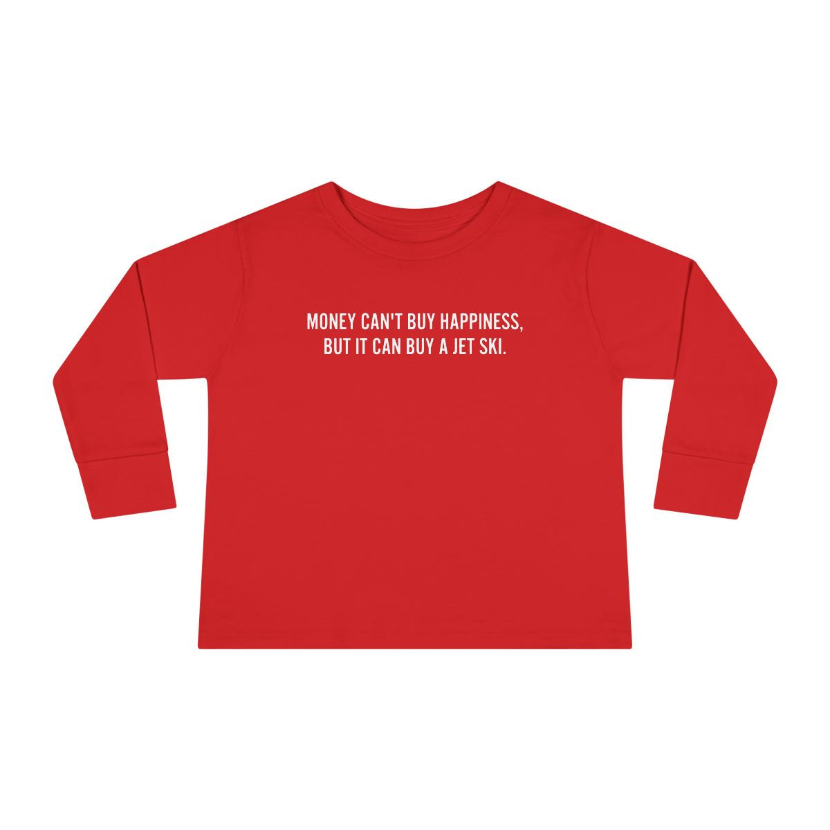 Soft, light, and playful — this toddler long sleeve tee brings grown-up humor down to pint-sized proportions. The deep blue cotton feels gentle against small skin while neat ribbed cuffs and a reinforced neck keep the tee looking tidy through play and washes. Front and back micro-text prints share quick, witty lines that read like inside jokes between family members who love lake days, summer laughs, and online cart victories. It sits comfortably on a toddler’s frame with side seams for structure and a tear-away label so there’s no scratchy tag to fuss with. Dress it over shorts for warm afternoons or layer it under a jacket for chilly mornings — it’s an easy, everyday layer that sparks smiles and conversations.