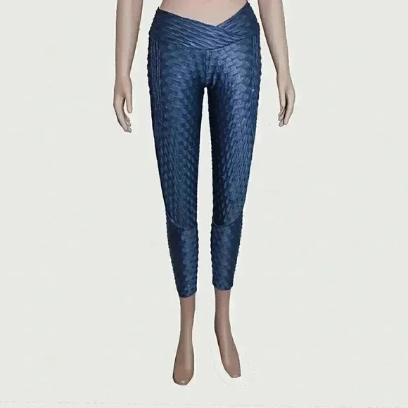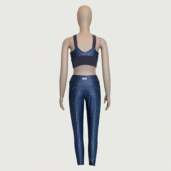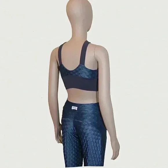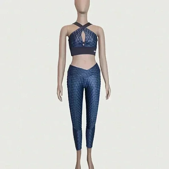Fitness Rio Blue Matching Workout Set Size Small Sports Bra Scrunchy High Waisted Pants-Blue scrunched stretchy fabric-Wide waist band-Scrunchy back-Geometric design-Criss cross straps can be worn front and back-Sports bra with front knot-Wide elastic band on the bra and leggingsID: COFV-WATH-843Color: Blue, BlackMaterial: 90% Polyamide, 10% ElastaneCondition: Good, with light general wear (Pre-owned) *Small white marking on the front*Brand: Fitness RioAll measurements are approximateDoubled Measurements (*)Size: SmallBraFull Length: 12in.Shoulder: 9in.Bust/Chest: 26in.*Waist: 21in.*Arm Opening: 9.5in.Hemline: 10.5in.LeggingsFull Length: 315in.Waist: 22in.*Hips: 35in.*Leg Opening: 4.5in.Inseam: 24.75in.Outseam: 31in.Front Rise: 9in.Back Rise: 12in.
