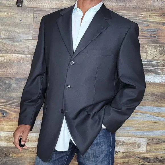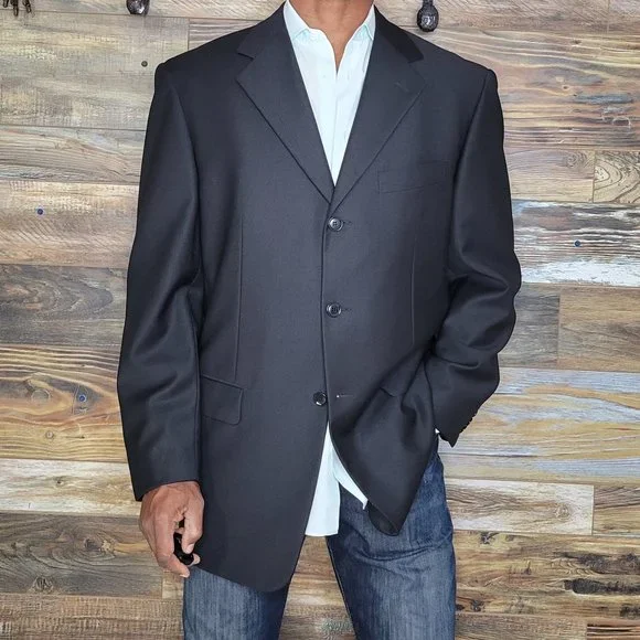 Paul Zileri Italy 100% Wool Black Blazer Sport Jacket Size 44RExcellent ConditionDesigned & Made: ItalySize: 44R Size Comments:General Comments: Excellent Condition, Please review the measurements provided below.- DetailsModel: 3-Button Front closure, No rear ventAppropriate to wear: Summer, Spring, Winter & FallFabric content: 100% Wool Color/Pattern: Black, SolidInterior pockets: 4Lining: fully-lined, Black satin- MeasurementsPit to Pit: 23"Shoulders at widest point: 20"Sleeve length from top of shoulder: 25 1/2"Length from bottom of collar: 32 1/2"